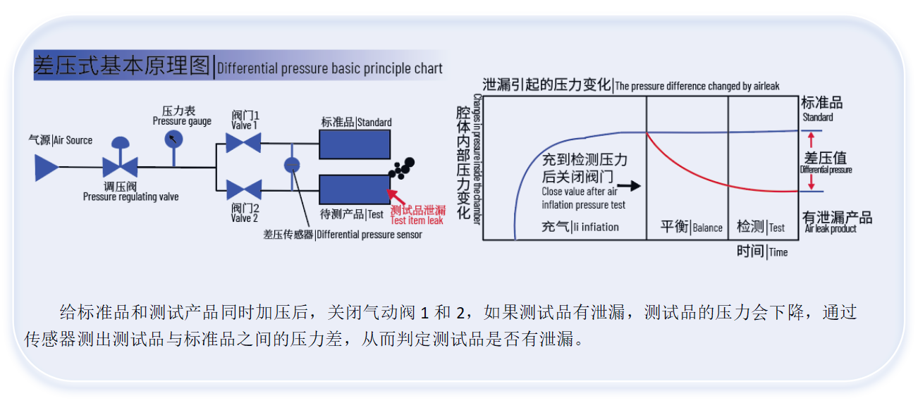 而差压型气密性检测仪通过在同一环境下同步测试被检产品和标准对照品,可以有效消除(排除)环境条件及被测产品本身结构引起的影响误差。测试端和标准端处在相同的温湿度环境中,面临相同的压力加载背景,这样检测出的压差更直接反映产品的气密差异,不受其他干扰因素的影响,确保了测试精度更高,能够提供更准确的测试结果。