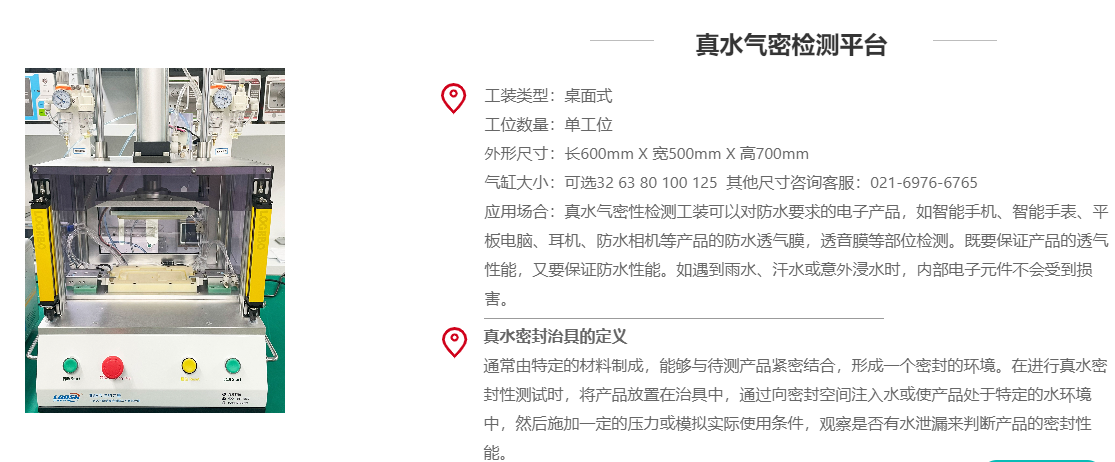应用:依据产品特性以及客户要求制作,与气密性检测仪配合使用,适用于多种检测工况,按需定制。桌面式检测平台,占地面积小,适合体积较小的产品测试。